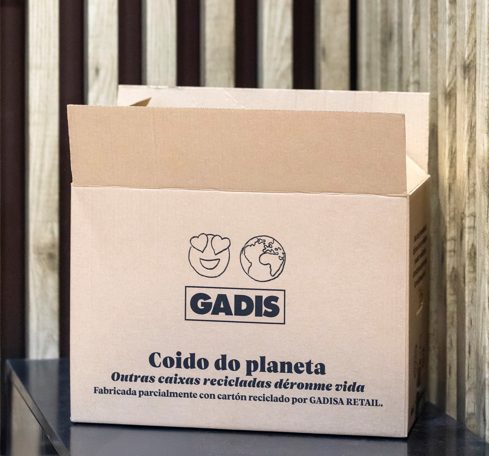 O 100% do cartón e do papel recíclanse e unha parte importante volve aos Supermercados Gadis transformado en caixas de pedidos a domicilio. Son materiais que utilizamos noutros procesos e aos que se dá unha nova vida útil: máis de 36 millóns de caixas fabricadas con 6.900 toneladas de cartón e papel.